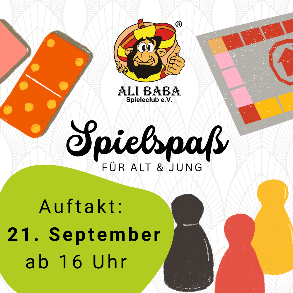 Die Auftaktveranstaltung des Ali Baba Spieleclub e.V. findet statt am Sonntag, den 21.9.2025. Wir laden alle Interessierten herzlich ein, dabei zu sein.